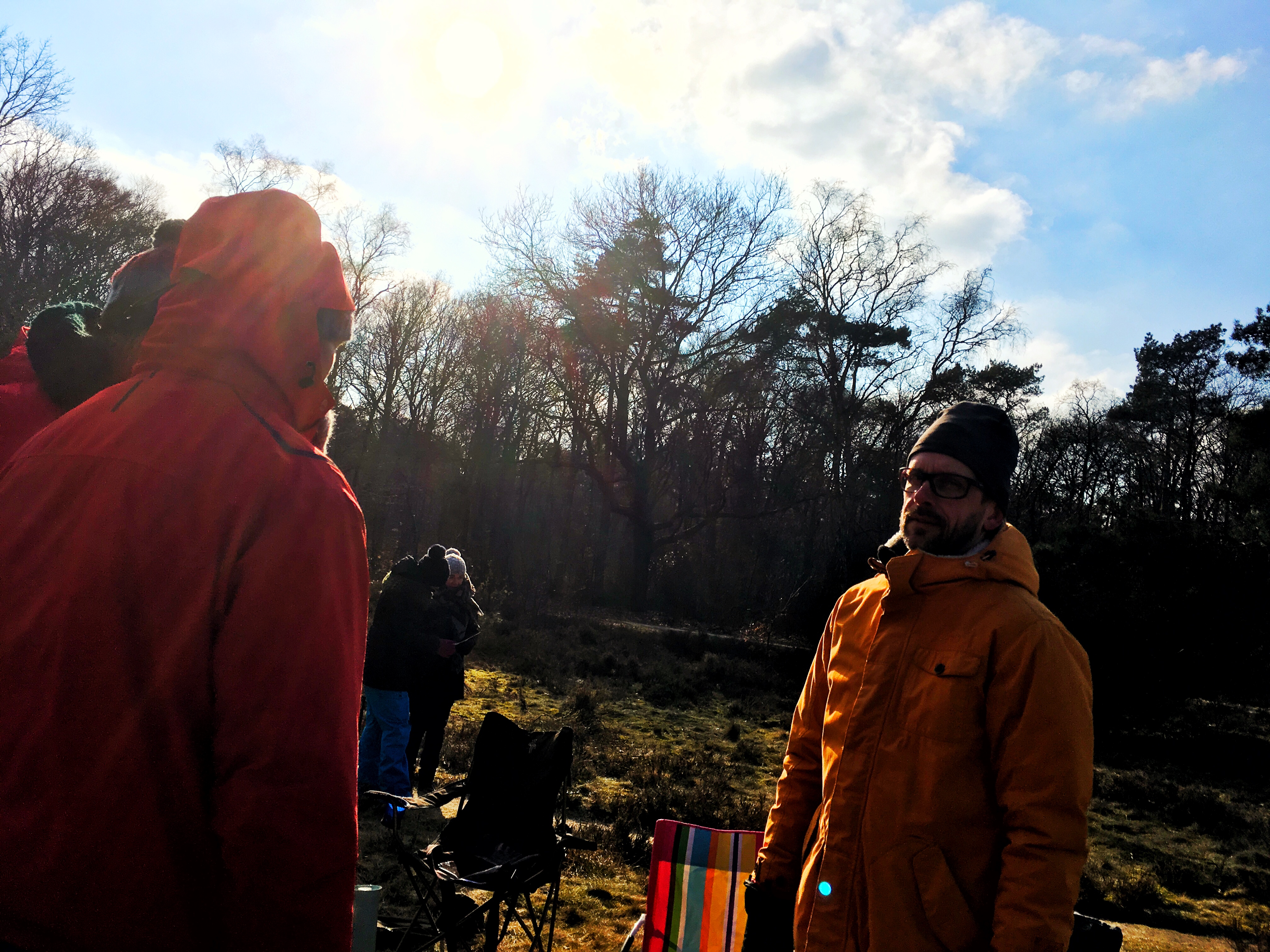 In principe werken we altijd buiten. Bij hoge uitzondering zoals een hele dag hevige regenval of bij onweer wijken we uit naar een binnenlocatie. Dus bereid je voor met goede kleding, passend bij het weer. Er bestaat geen slecht weer, wel slechte kleding 😉